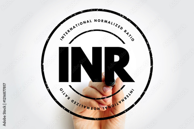INR International Normalized Ratio - measures the time for the blood to clot, acronym text stamp concept background