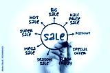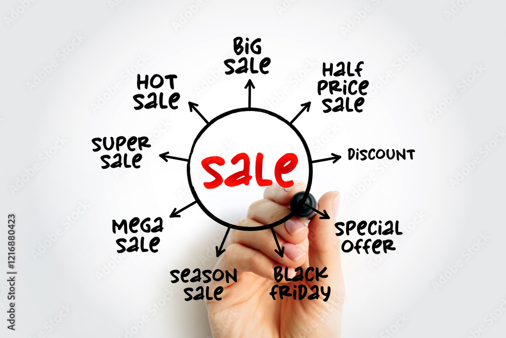 Sale tags mind map, great sale, special offer, sale concept with marker