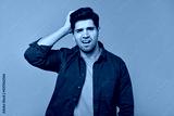 A Confused Man is Expressing His Frustration While in a Studio Setting Surrounded by Equipment
