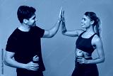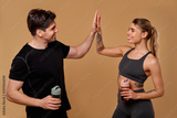 Fitness Enthusiasts Joyfully Sharing a HighFive After Completing Their Energizing Workout