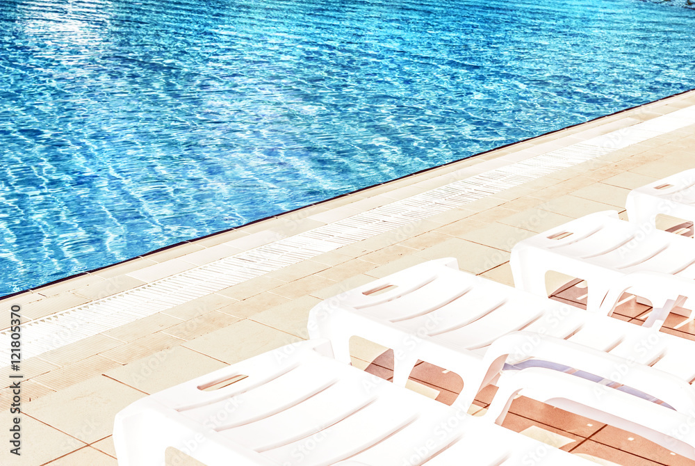 Sunbeds at pool