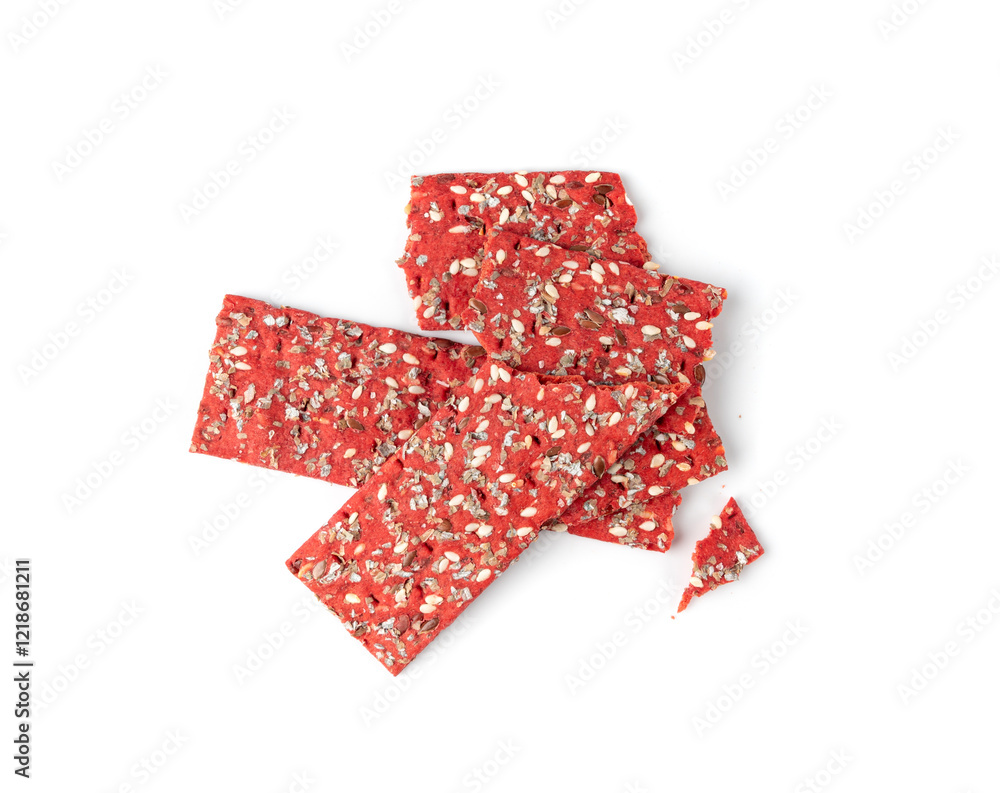 Beetroot crackers, thin rusk beet root bread, red diet multigrain crispbread, various seeds