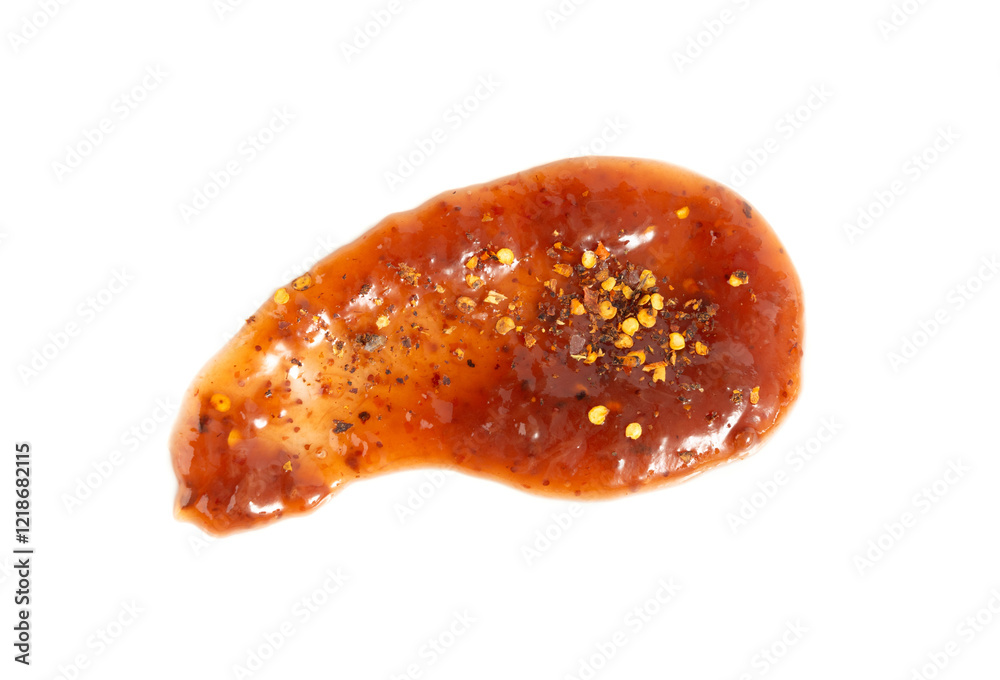 Orange jam with chili isolated, strawberry chilli pepper marmalade smear, spicy fruit jelly fruity confiture