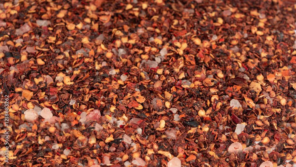 Chili and salt seasoning, red chilli pepper spice powder, dry crushed hot pepper flakes