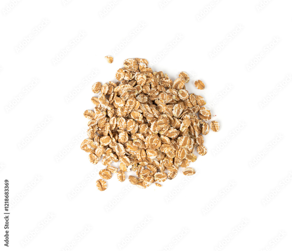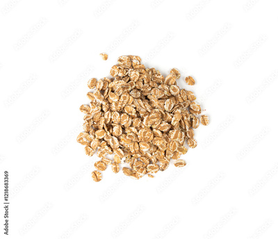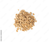 Spelt flakes isolated, dry raw rolled flat oat grains, wheat, oatmeal or bran, barley rye cereals
