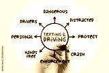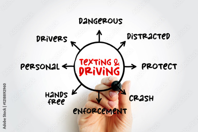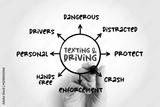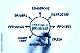 Texting and driving - act of composing, sending, reading text messages, or making similar use of the web while operating a motor vehicle, mind map concept for presentations and reports