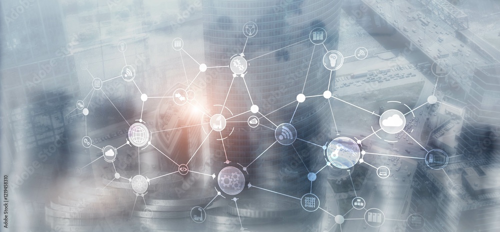 Industry 5.0. Business Finance Technology. Mixed Media Abstract Background