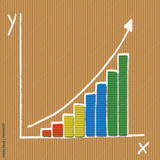 Color bar chart graph with x and y axis, cardboard paper texture