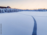 Frozen winter mountain lake Strbske pleso. Strbske lake with view of the High Tatras National Park, Slovakia