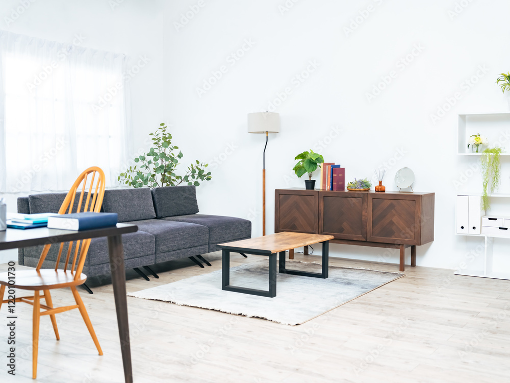 インテリア、リビングルーム、室内、家具、マイホーム、リビング、シンプル、おしゃれ、明るい、爽やか、ダイニング、テーブル、キャビネット、ソファー、モダン、ライフスタイル、不動産、カジュアル、暮らし、内装、清潔感、コピースペース、住宅、住まい、棚、マンション、アパート、無人、スタイリッシュ、コーディネート、ランプ、雑貨、カフェ、部屋、フローリング、住居、ラグジュアリー、ラグ、モデルハウス、モデルルーム