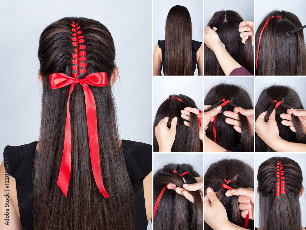 braid hairstyle with red tape tutorial