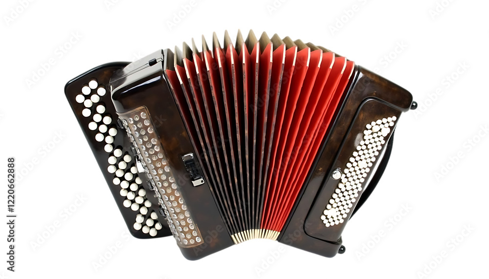 Classic Brown Accordion Musical Instrument Red Bellows