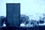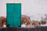 A rustic turquoise wooden door