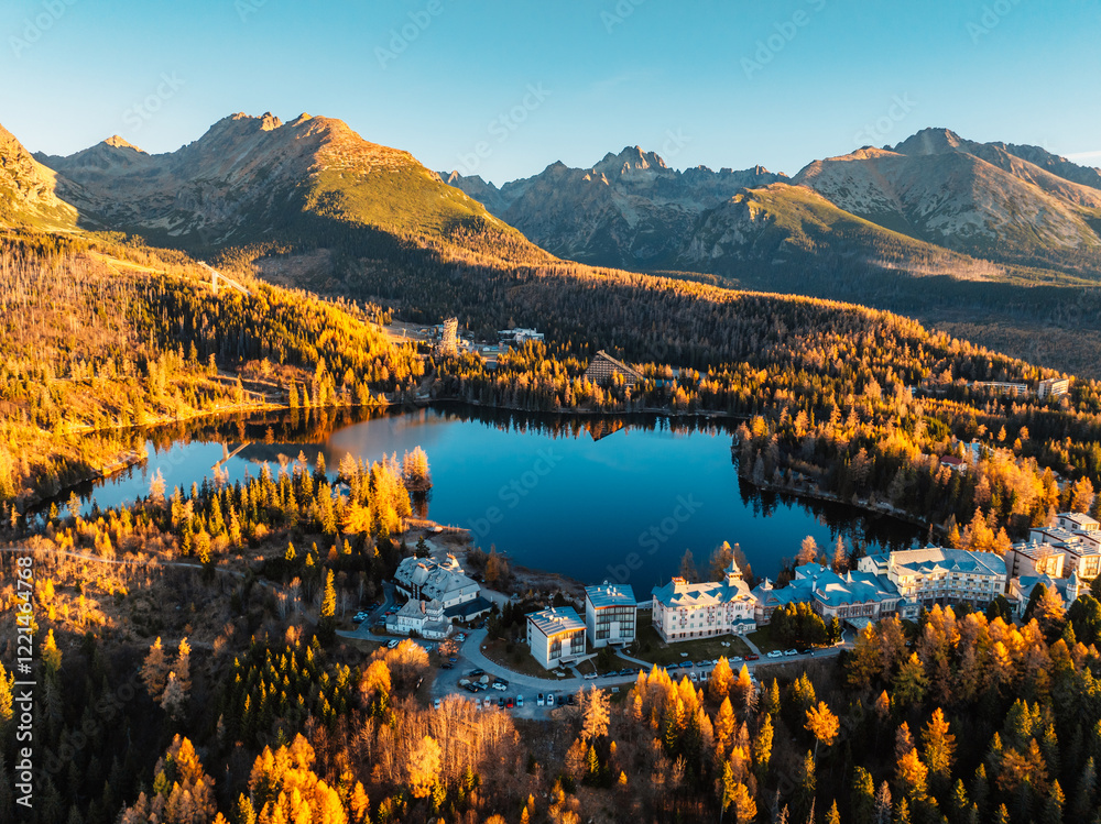 Mountain lake Strbske lake with view of the High Tatras National Park, Slovakia