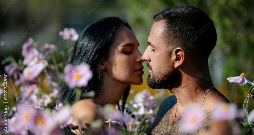 Close up face of a beautiful young couple in love embracing, romance and and affection. Sensual couple kiss. I love you. Romantic and love. Couple kissing, close up. Sensual kiss.