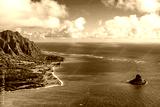 Aerial view of Kualoa Point and Chinamans Hat at Kaneohe Bay, Ha