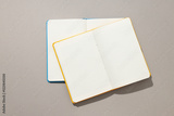Open notebooks lie on a light background