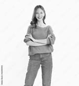 Young beautiful Asian woman standing with arms crossed isolated in white background.