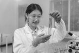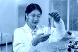 Scientist Conducting Experiment with Blue Liquid