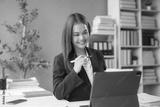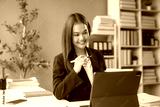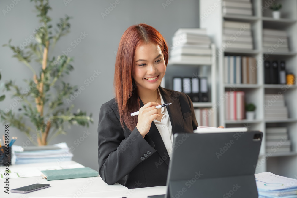 Businesswoman working with tablet and taking notes in modern office