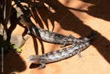 the two blue tongue lizards are passing each other