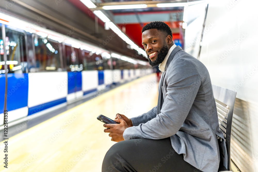 Businessman using smartphone while waiting for subway train
