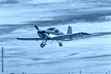 Bright red and white kit aircraft with fixed tricycle undercarriage flying against a blue cloudy sky in the Western Cape, South Africa