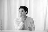 リビングで肌を確認する日本人男性