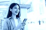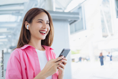 Beautiful young Asian woman using smartphone in public areas, During leisure time. The concept of using the phone is essential in everyday life.
