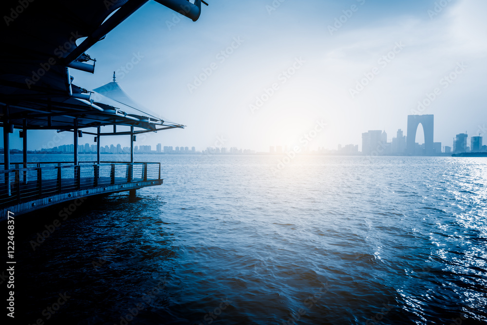 suzhou jinji lake scenery,jiangsu province,china.blue toned.