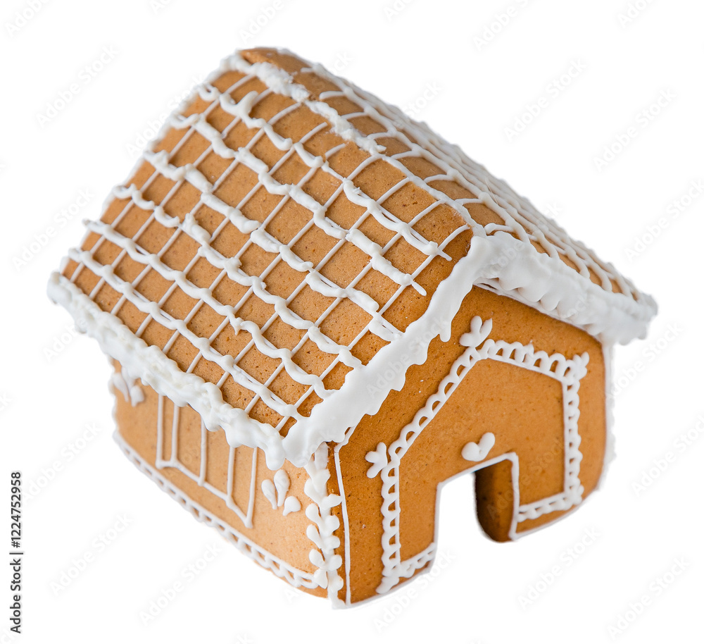 Gingerbread House Cookie isolated on white background. Christmas food