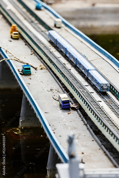 abandoned transport bridge with cars and the subway train. Concept appokalipsis. Accident