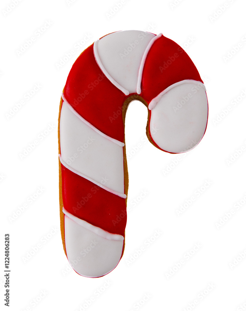 Candy Cane icing Cookie Gingerbread isolated on white background. Christmas food