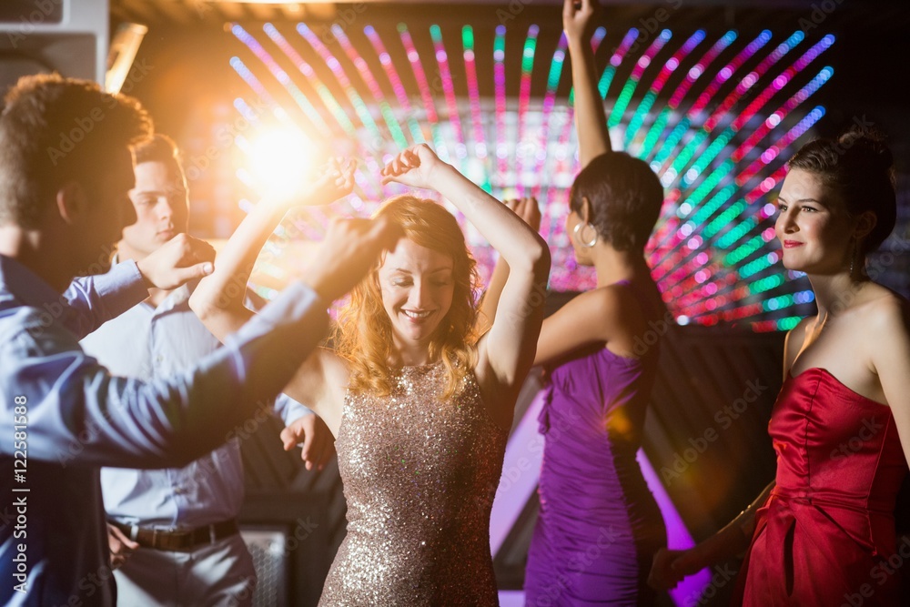 Smiling friends dancing on dance floor
