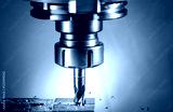cnc milling machine - spindle with blue cutter, Versions: .natur