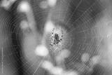 Spotted garden spider (Neoscona oaxacensis) on its web in a forest, in the Sierra de Guadalupe, Mexico State