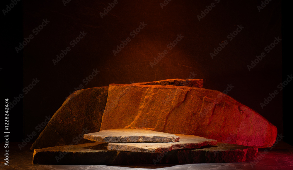 cosmetic beauty podium background with brown stones.natural stones with texture on dark background for product presentation