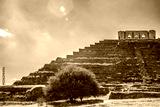 El Pueblito pyramid in Queretaro, surrounded by green vegetation