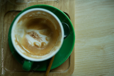Empty green ceramic cup coffee after drink. Top view