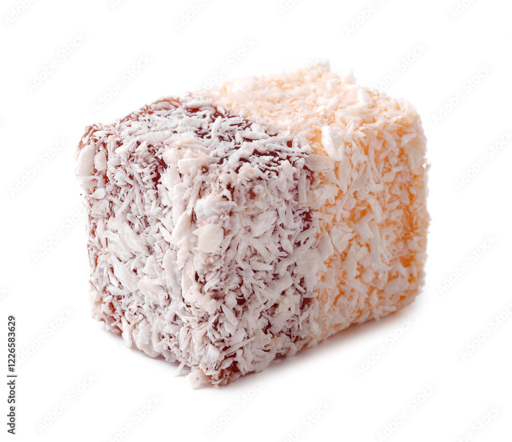 Deliciously layered coconut treat showcasing chocolate and orange flavors with a fluffy texture