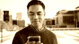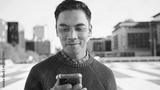 Young Man Smiling While Using Smartphone Outdoors in the City