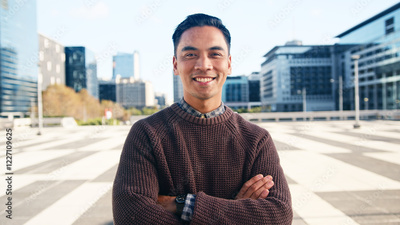 Confident Young Man Smiling in Urban Environment on a Sunny Day