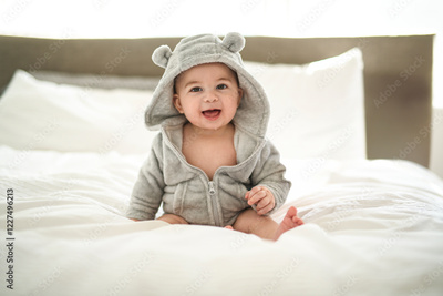 Portrait of a cute 6 months baby on a blanket