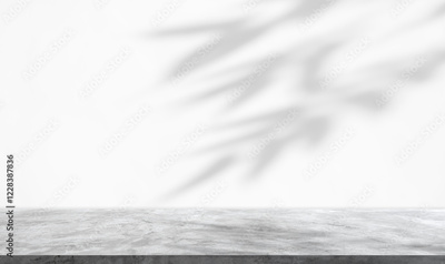 Empty grey concrete floor countertop with shadow leaf light white wall well display design advertising display studio products
