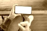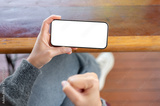 A woman holding a phone and clenching her fist in excite as she reacts to a video she is watching.