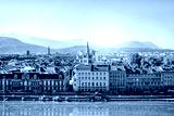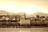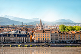 Morning cityscape view on the old town with mountains and river in Grenoble city on the south-east of France