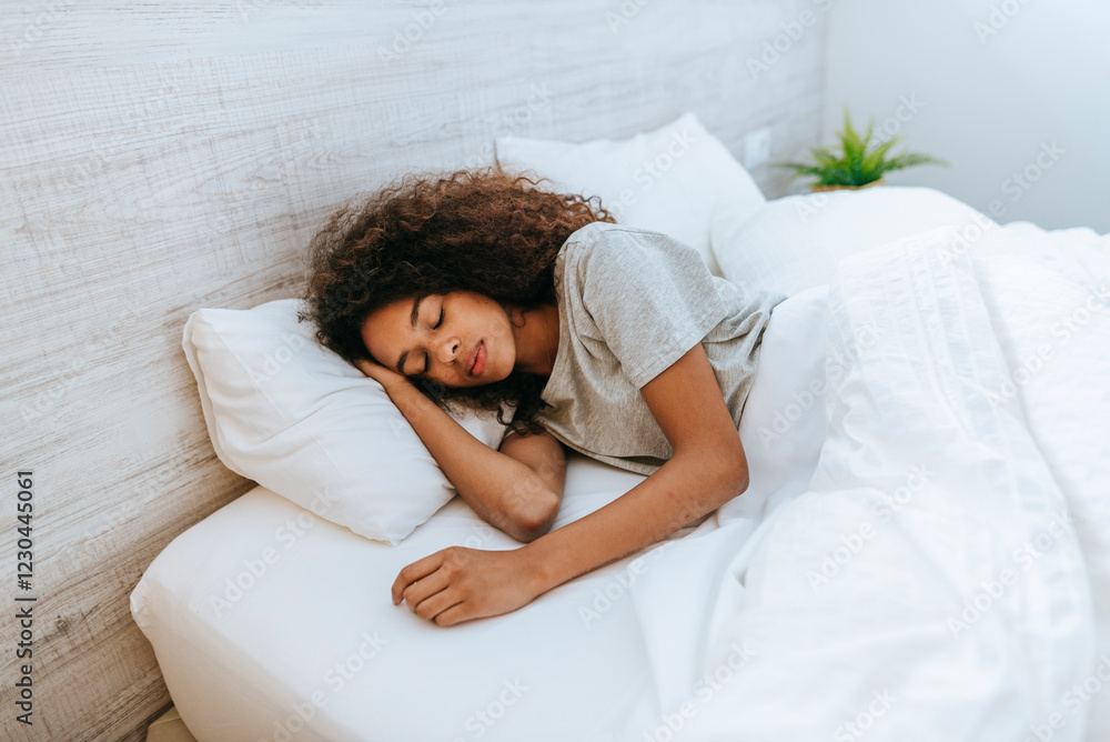 Portrait of woman sleeping in bed