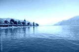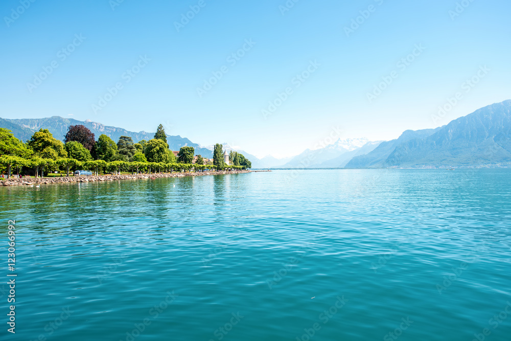Landscape view on Geneva lake with beautiful mountains in Switzerland