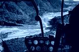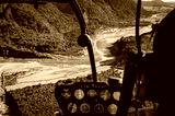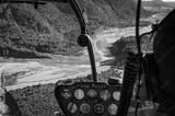 View from helicopter on beautiful landscape of mountain river. Whataroa, South Island, New Zealand. Selective focus on landscape