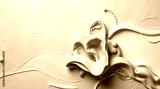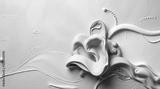 Sculptural clay artwork and white abstract background with color gradient ombre, noise grain, line waves, and metallic